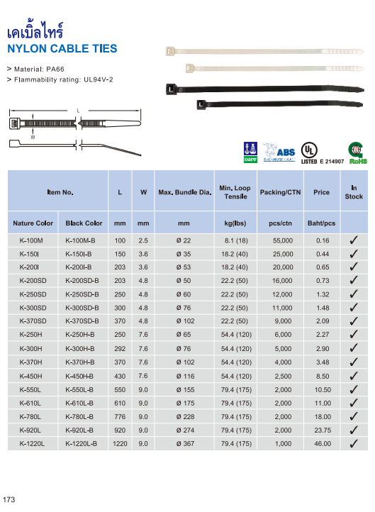 จำหน่าย เคเบิ้ลไทร์ KST และหางปลาย้ำสายไฟ